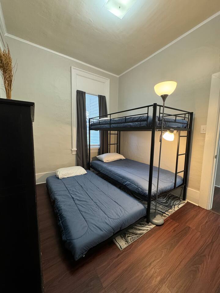 Forget your worries in this cozy apartment in the heart of Uniontown! You will be welcomed with huge rooms and tons of space. With comfortable beds, a massive wrap around porch and smart TVs, you have all you need to feel at home. This home is perfect for large families and sleeps 7 with a queen, full, and trundle bed. A short drive will get you to many delicious restaurants, shopping options, and local attractions. This unit offers a ramp at the entrance and does not have any steps.