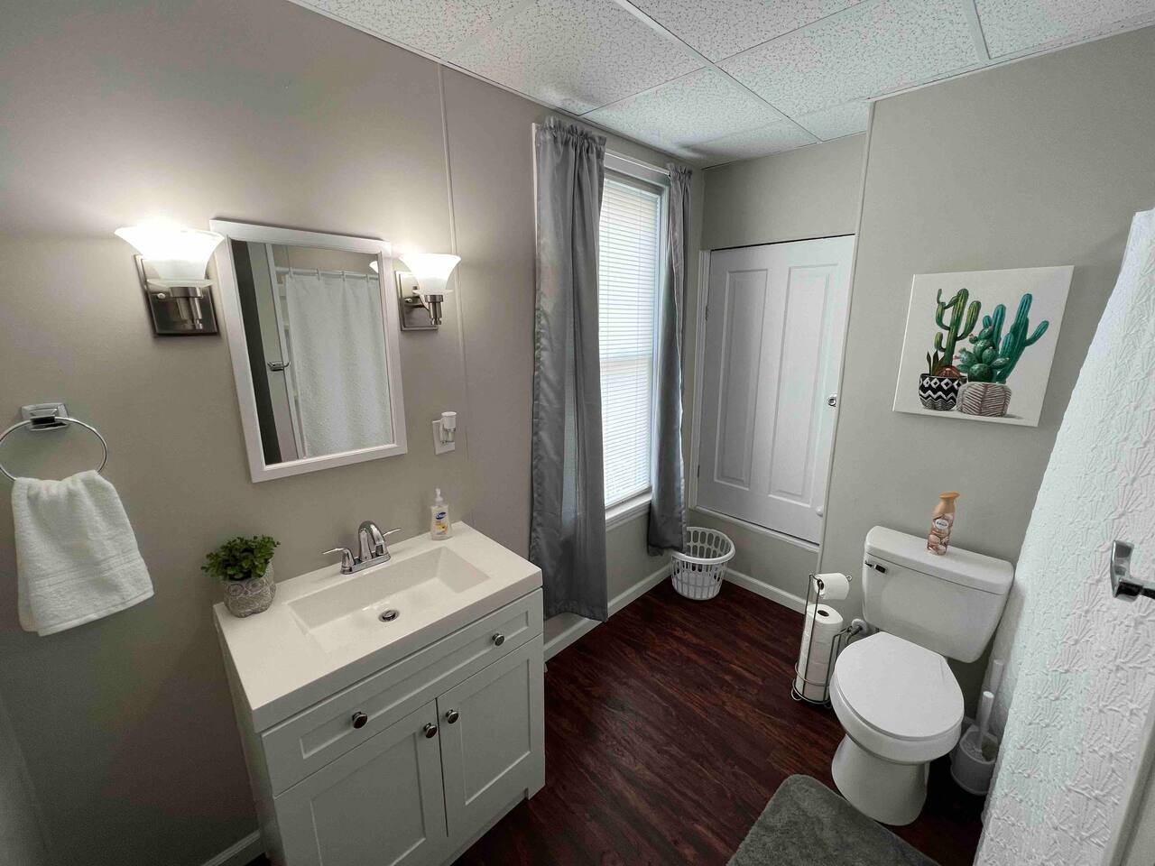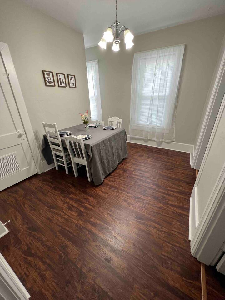The Modern Victorian is an Upstairs and Downstairs duplex that allows your large group to be together when desired, but gives space to spread out when needed as well. For guests who are unable to use stairs, there is a ramp outside and there are no steps in the downstairs unit.